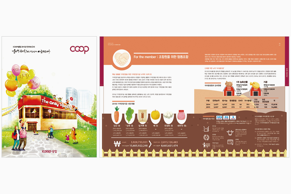 iCOOP 컨셉 컬러를 활용한 생협 연차보고서 제작